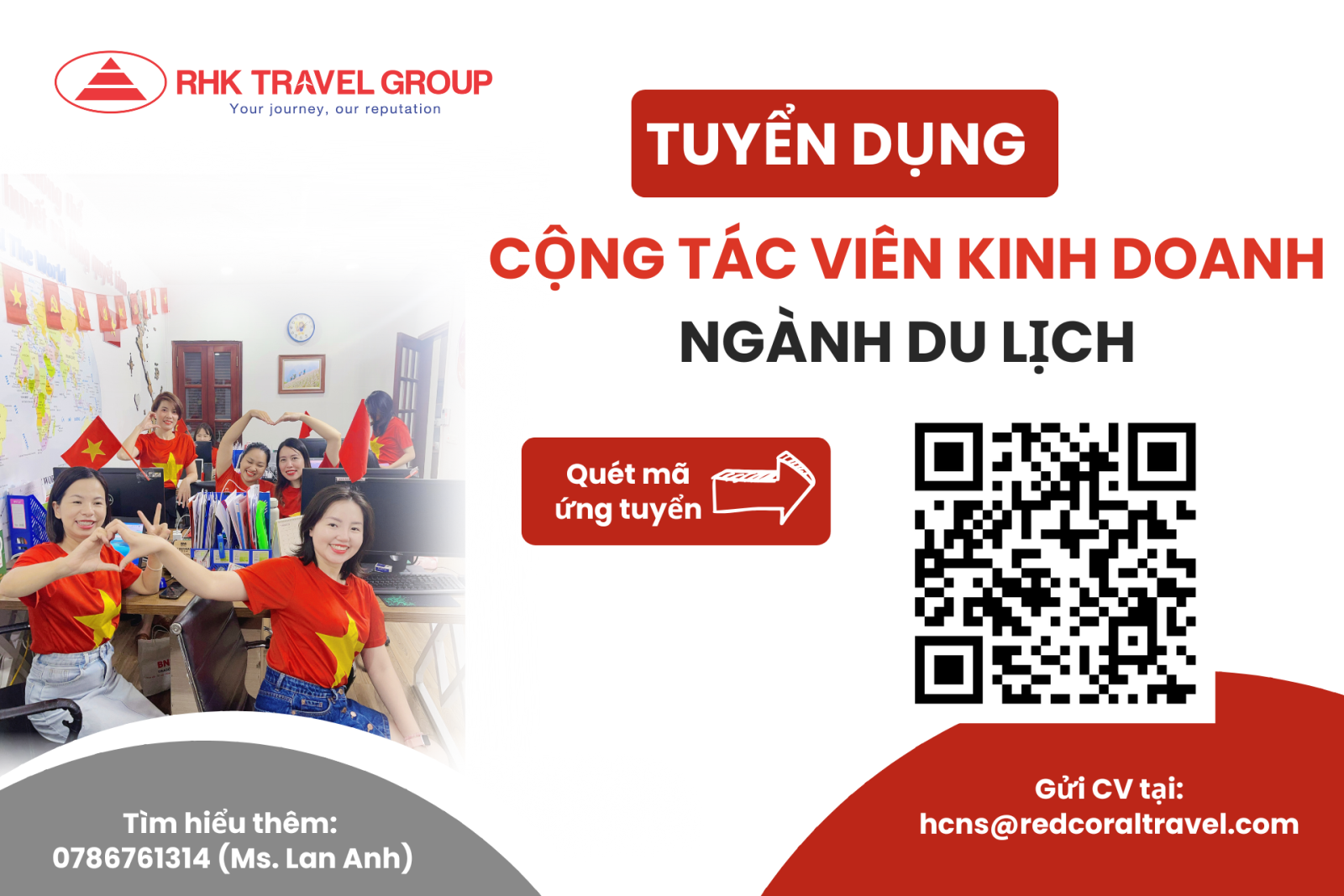 Tại RHK Travel Group, chúng tôi tìm kiếm những người có khát khao tạo ra những giá trị thật, làm việc với niềm đam mê nhiệt huyết với ngành du lịch. Slogan của chúng tôi là “ Your Journey - Our Reputation” khẳng định triết lý lấy khách hàng làm trung tâm và chịu trách nhiệm đến cùng cho chất lượng dịch vụ – từ tư vấn, vận hành đến hậu mãi.